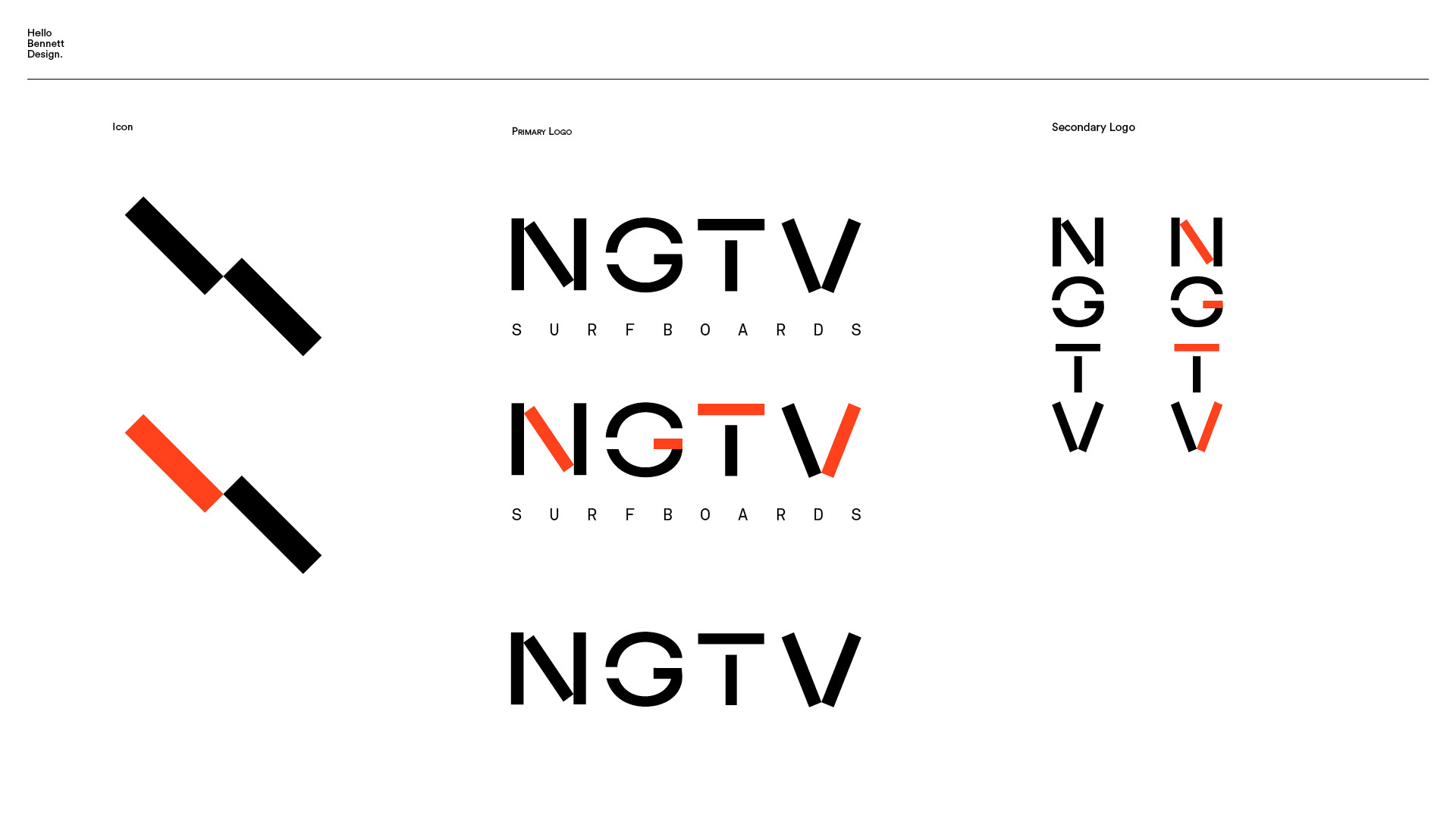 A new brand identity for Negative Surfboards, the logo and design system uses the simple shape of the negative - symbol to create a playful and unique design language.